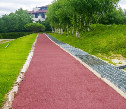 기존 클레이 포장의 단점을 획기적으로 개선하여 적절한 경도를 유지하면서 비가 온 후에도 곧바로 사용 가능한 혁신적인 클레이 포장재입니다.